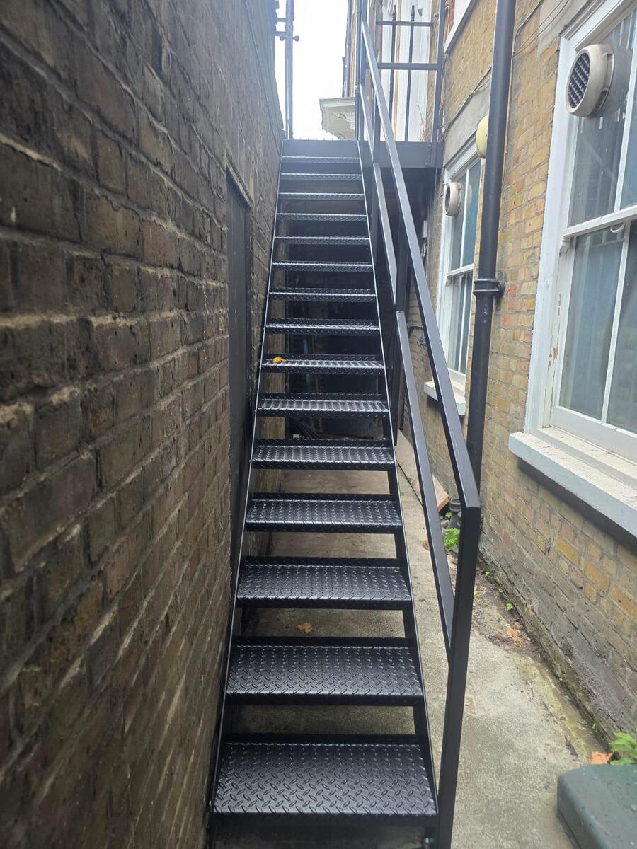 Our staircases are built around your space: straight runs, L-shapes, spirals, and multi-flight fire-escapes. We start with a site survey and drawings, then fabricate using certified steel and clean, continuous welds for maximum strength and a neat appearance. Stringers and landings are jig-set for accuracy; treads available in chequer plate or open grating with anti-slip nosings. Handrails and infill panels are custom-made to suit your style and safety needs.